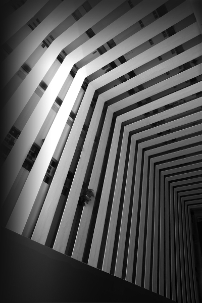 Surprising, it was in an industrial building that I found such bold lines. The exterior of the building wasn't attractive, but the interior was totally captivating. I was there for an appointment but since I was early, I didn't waste anytime but started shooting away with my camera. You have to be there to see the lines for yourself; to see how straight and uniform they are, bending at 90 degrees at the corners.