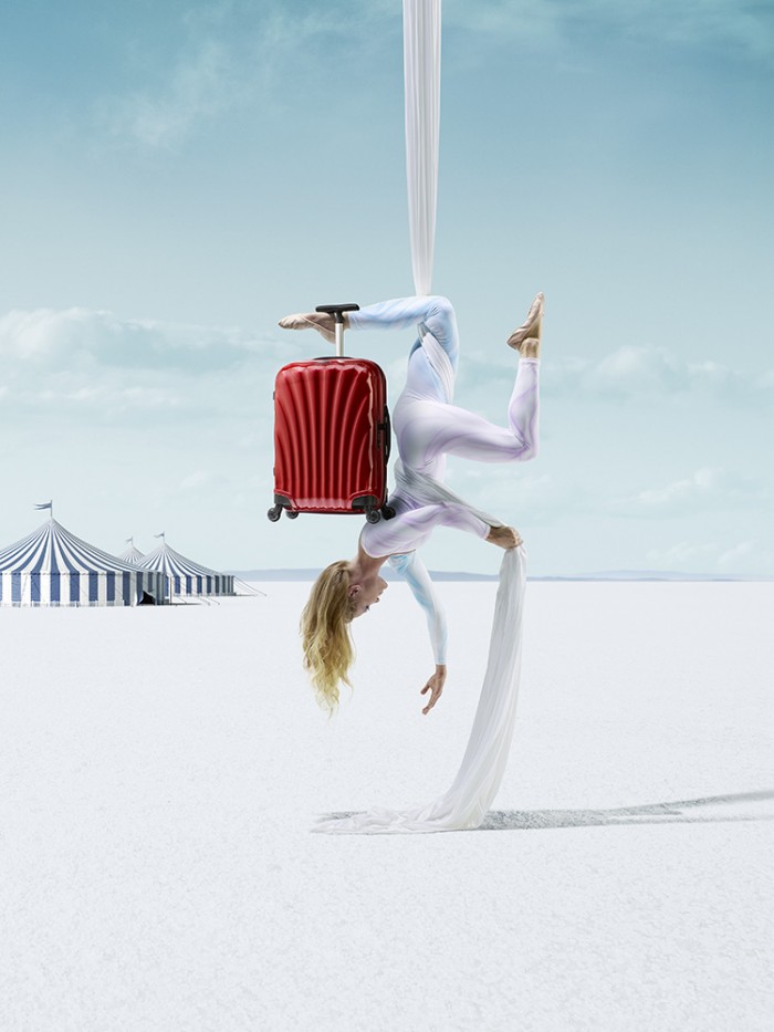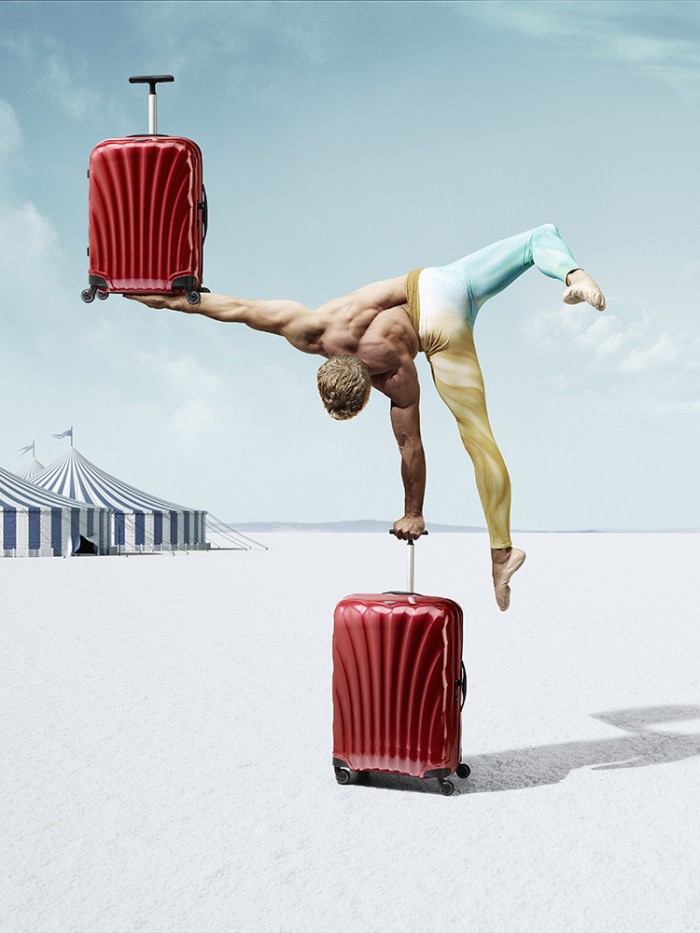 This series of conceptual ads depicts the strongest and lightest Samsonite product ever.
