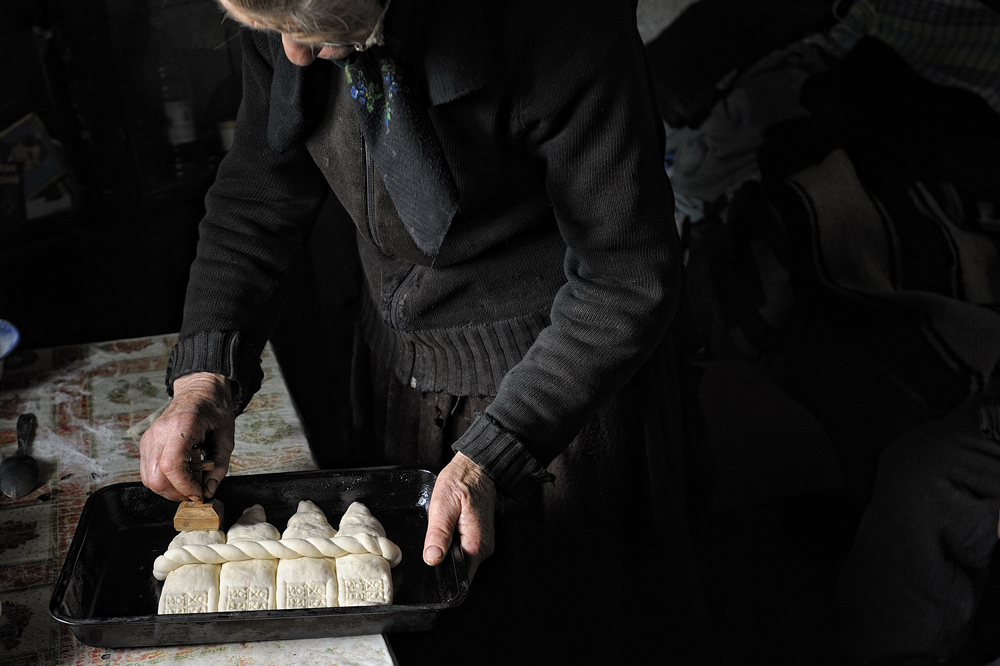 Gheorghe and Silviuca Gherman live, with their daughter, in Sarbi, a small village in the Maramures county, Romania. Every sunday they prepare a special bread for the church, bread that will be blessed and given to the faithful for the communion. A symbol that means "Jesus Christ prevails" is made on the bread using a stamp called "pecetar". It is necessary to have a special blessing by a priest in order to be allowed to prepare the holy bread. In the Gherman family both mother and daughter have this permission.