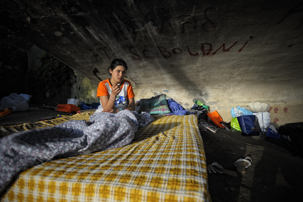 A young romanian family lives under one of the bridges along the Tevere river in Roma, Italy.