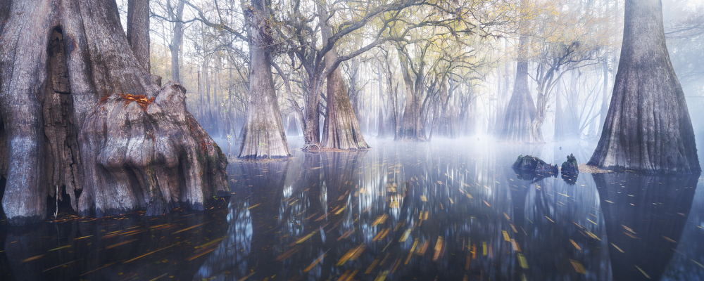 A foggy morning and fall colors among the cypress swamps of north Florida.