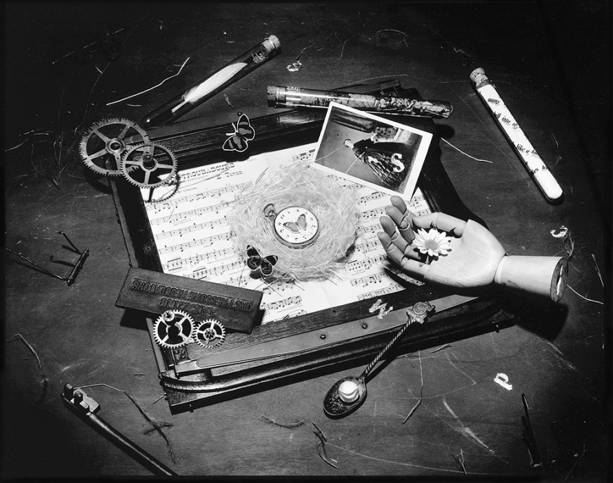 I am trying to cross the boundary between real and imaginary with this series. These images are the fragments of an alchemist's dream who I set up as a key character in this series. As his day dream is happening on his desk in a lab, I actually set up all the scenes on a desk. Since I want these scenes to really exist for real, I constract all the scenes beginning with seeking for props, and shoot strait-forward with 8x10" camera. With the fact that I shot with film, that makes it a proof of these worlds' existence because film cannot lie. As I try to cross the boundary in such a way, I want to give the viewers a little kick starter to open up their own doors to the imaginary world.