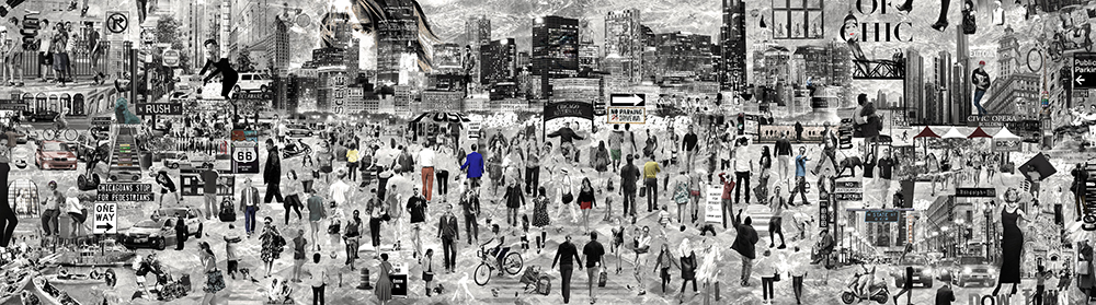 Photomontage of 425 photographs taken in Chicago over several months. "Chicago - Synchronicity" speaks of the diversity, the community, the vitality of the city of Chicago. At its core it’s a celebration of life as it represents the individuality of humanity and how our differences and distinct attributes meld together to create a universal story. It’s a presentation of how we all walk together in life - the synchronicity of life.