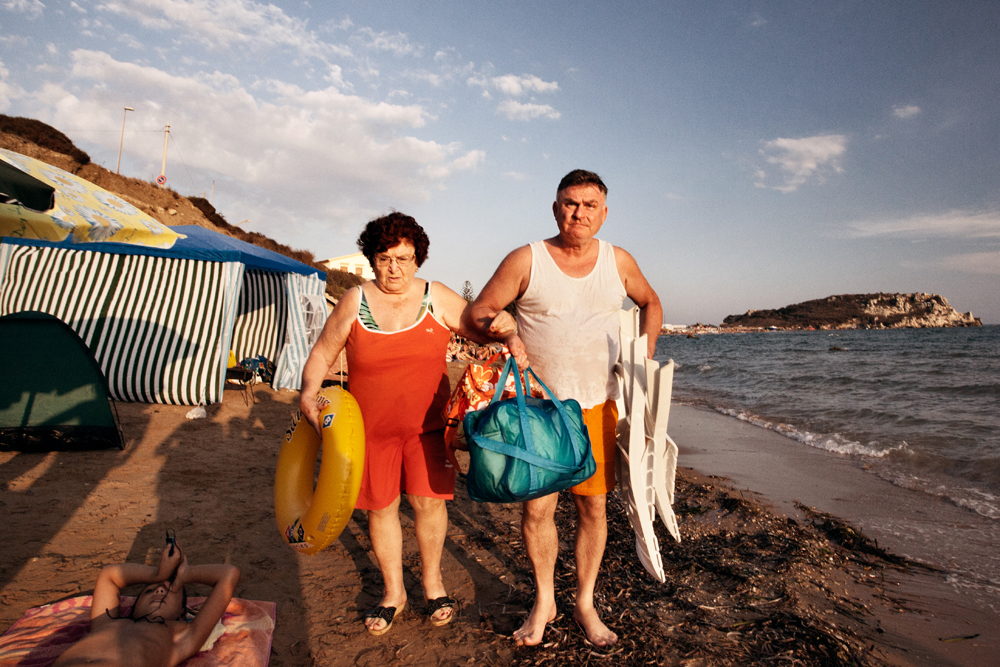 "n Italy the 15th of August is a national holiday and it is seen as the peak of summer. The beaches that day are very crowded, people even arrive the day before and set up tents just to be sure to have the maximum of their holiday. They spend all day along at the beach and over there all the usual activities, like playing, eating, sleeping, etc., are done outdoors. All kind of people are seen, and it is a pleasure to contemplate at the same time so much of humanity enjoying and relaxing under the sun." This project called 'A day on the beach' was started in August 2013, the main idea was to show how people spend the 15th of August(one of the busiest day) at the beach; since then, the project has carried on in different beaches around Sicily, and in different days. I am using for this project dslr (digital or film) cameras and mobile phones.