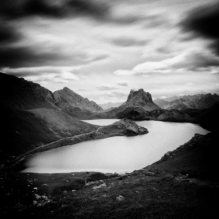 A trek of about 9 miles that runs between the border of France and Italy, going through a wild and primeval landscape. Along the way we meet some lakes, Lac de l' Oronaye (2411 m. a.s.l) and Lago di Roburent (2426 m. a.s.l.). Parc National du Mercantour. France/Italy 2014
