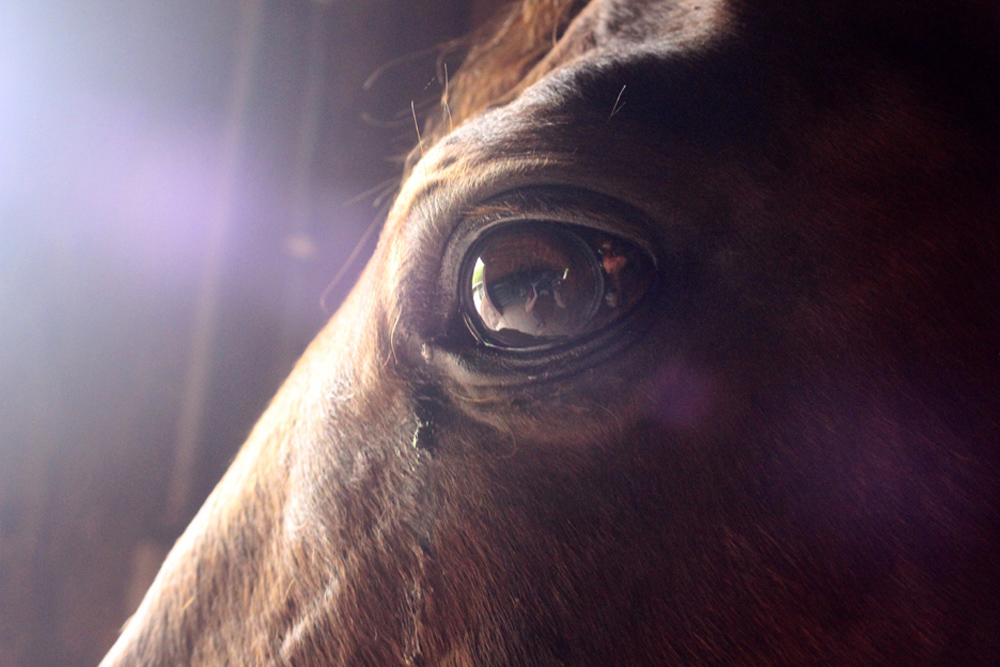 My Off-The-Track Thoroughbred horse, Stewey, looks out beyond me as if searching for his past life as a racehorse that was tragically ended with a broken leg. Unlike many race horses who meet this same fate, Stewey has found a forever home with me, off- the- track.