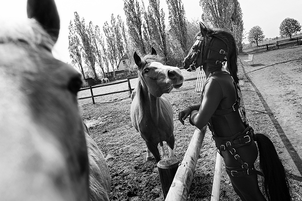 Fetishism and sexual role plays do not belong to the socially accepted varieties of sexuality and are often considered to be perverted or abnormal. The prevailing perspective on this topic is predominatntly shaped by physical violence, rubber and leather. The true bandwidth of fetishes is unequally wider and varies from human horses and masochists, latex-brides and human puppies to slaves and real-life-rubberdolls. Behind many of the often dangerous or potentially harming practices is the desire to satisfy basic human needs such as closeness, security or confidence. Due to the lacking acceptance, many fetishist still feel forced to supress their needs, what often places themselves into social isolation. On the other hand, the pornification or sexualization of society changes the perception of privacy and intimacy as well as sexuality itself. The capacity and availability of the internet simplyfies the exchange of people who share the same sexual preferences or paraphilia. Thus, many fetishists gain a new self- conception. In general, sexual niches seem to become presentable and still, sexual fetishism remains an unknown or unwanted part of social life, although books like “Shades of Grey” top the world´s bestseller lists and fetishist elements are to be found in many shapes and colors throughout pop culture.