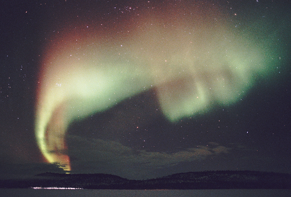 Photo taken with a roll of Agfa Vista plus 400 negative film in finnish Lapland. In Finland, people call the aurora borealis "Revontulet", which means fox fire. The folk tale has many different versions and one of them says that an arctic fox is sweeping its tail while running on the snow, so the sparks fly off into the sky and form the amazing light. Taking pictures with films is always interesting because we can't see the images until they are processed. And here's a beautiful surprise in which the light looks like a fox tail under the long exposure.