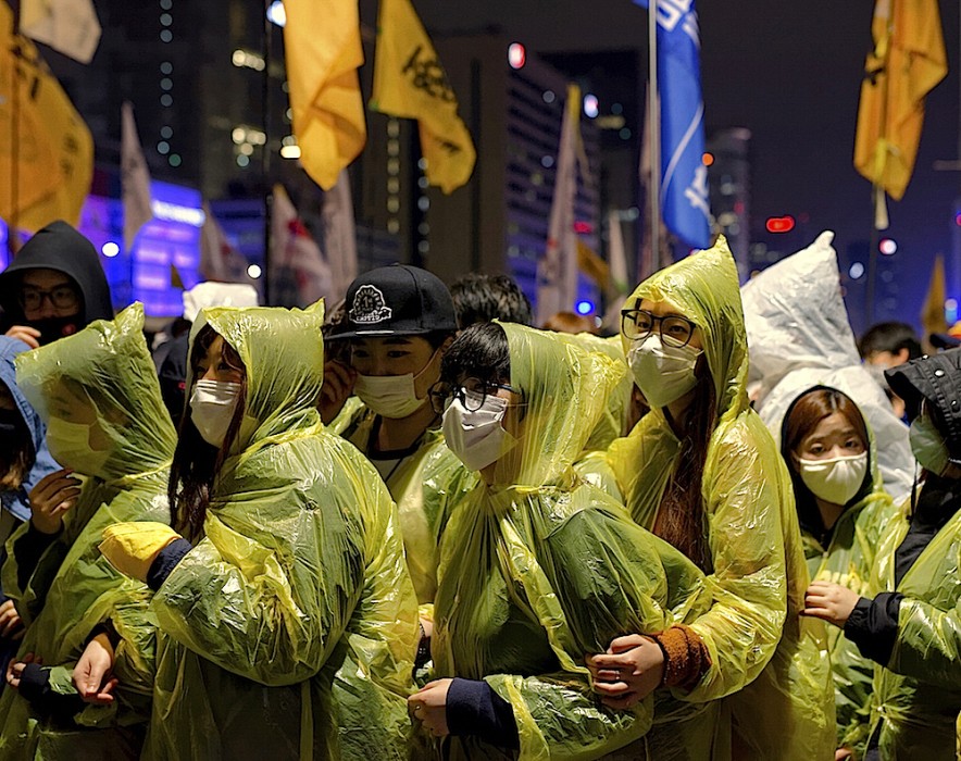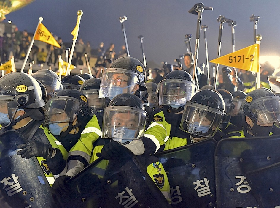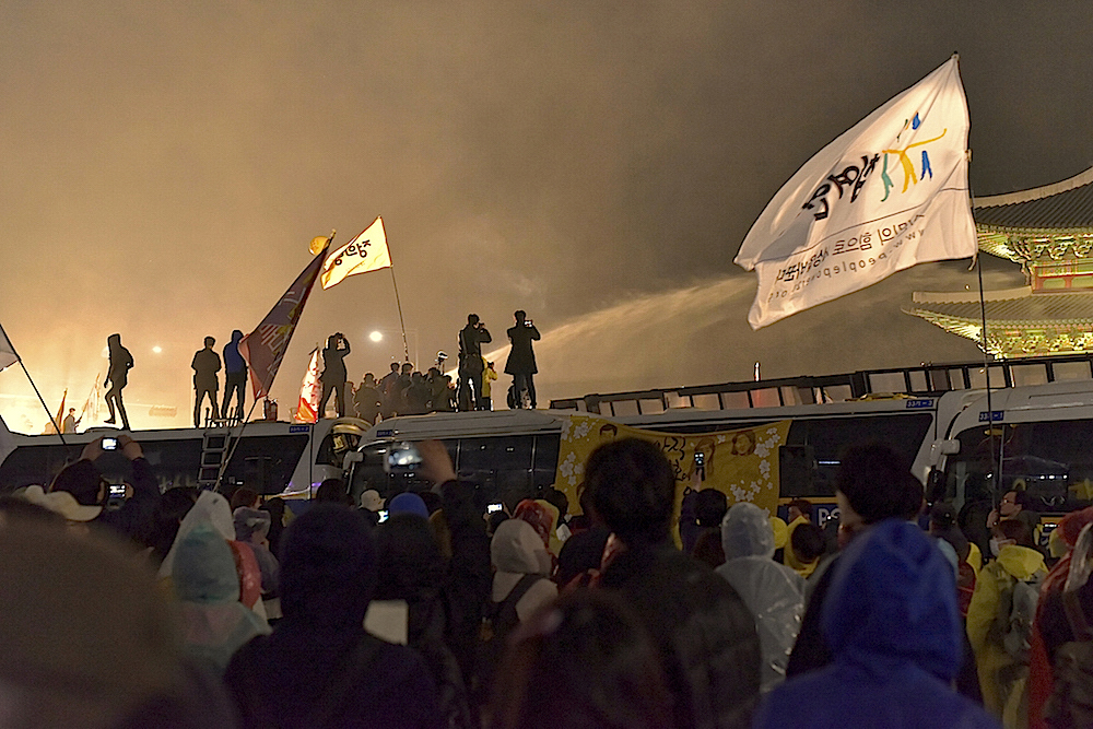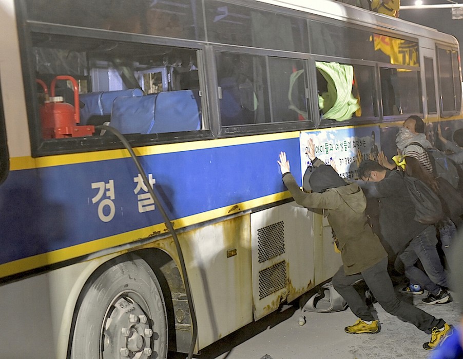 Thousands of Police protestors clashed outside the Royal Palace in Seoul on Saturday after families of the victims of South Korea's ferry disaster were prevented from marching to the president's residence. An crowd of about 3,000 forced their way through police barricades in their attempt to join a group of some 50 other families who had been staging a 2-day sit-in nearby. Police used pepper spray and water cannons and traded punches with protesters in the front of the crowd. A number of Police buses were destroyed by protesters. "Salvage the Sewol ferry", the protestors chanted. The sinking of the vessel in April last year claimed 304 lives, most of them teenagers on a school journey.