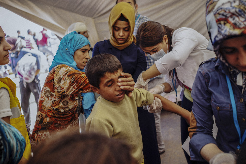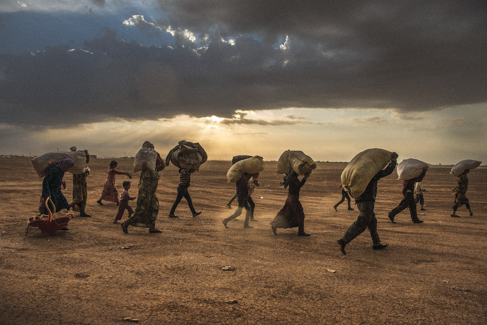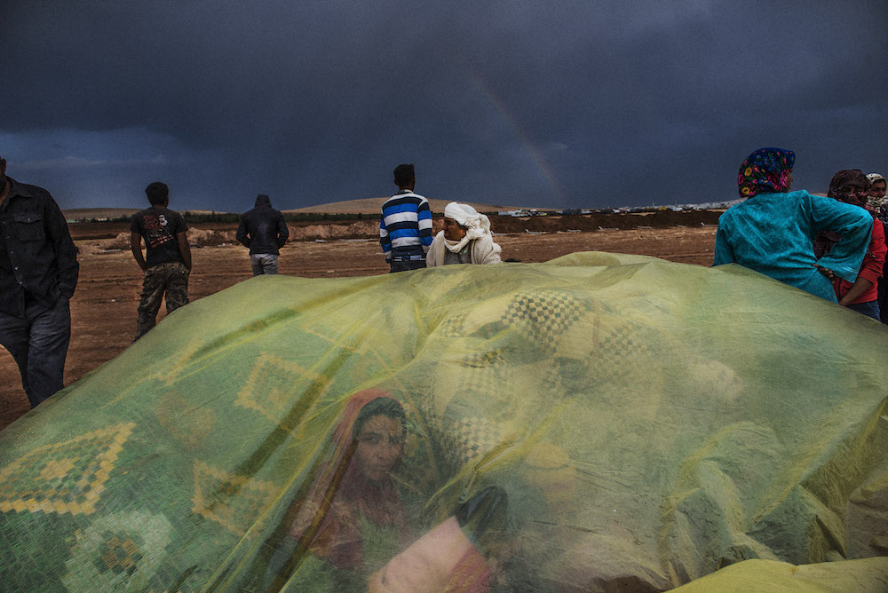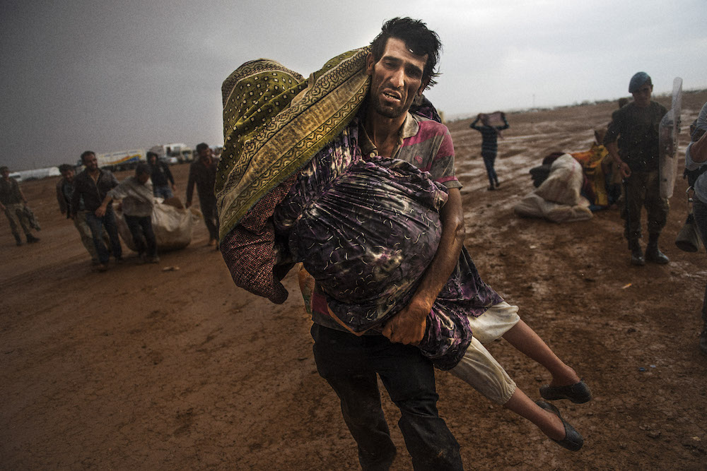 The Siege of Kobane was hurled by the Islamic State (also known as ISIL or ISIS) fighters on 16 September 2014, in order to capture the town of Kobane in northern Syria. By the first quarter of October 2014, ISIS was achieved in capturing more than 350 Kurdish villages and towns within the locality of Kobane making a flood of some 300,000 displaced Kurdish, most of who escaped across the border into Turkey. At the Turkish-Syrian border hundreds thousands of refugees were waiting to figure out where they can find a safe shelter. There were hundreds of cars and buses jam-packed with people, predominantly women and children, who had fled Kobane and traveled north. Some have carried livestock with them in the hope that they can soon return to the farmlands they quickly evacuated, an increasingly lonely desire. People who had crossed here were anxious about their families who were stuck on that small strip of land between Kobane and Turkish border. There were constant bombing, a trail of smoke at the sky. I saw men, women and children carrying or dragging everything they could manage. Even a lot of people were carrying their doves in a big sack and also cages of their pet birds. Pregnant women were carrying suitcases. In some cases, children were pulling bags almost as big as themselves. Dust was everywhere, and a feel of misery was tangible in the air. Many sleeps inside family cars parked next to the barb wire border fence and many of these people had spent the past nights sleeping in open fields before they could cross the border.