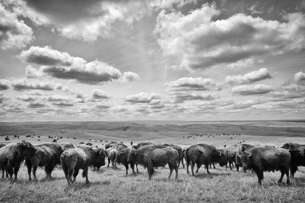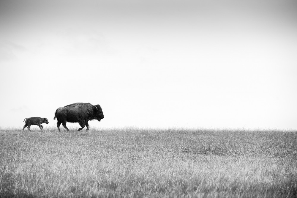 Thunder rolled across the prairie – and then there was silence. It was probably more than 30 million American bison roaming the plains of the Midwest. Nothing was more powerful in the prairie, neither physically nor spiritually. It meant everything to the American Indians. The bison was their life. With the arrival of the European settlers massive slaughter began. Never before had human beings killed so many animals in such a short space of time. Almost the whole population was annihilated within less than two decades. The (hi)story of the bison is a parable about globalization and the interplay of technological progress, capitalism, and a lack of understanding ecological contexts, ideologies, and politics. What followed was an ecological, economic, and social disaster. The whole country suffered. The prairie vanished with the bison – and with it all the hope.Now the bison returns. It is a journey into the past in order to gain a future. And this is not nostalgia. The bison is a real existing and socio-cultural phenomenon. It is a current political issue in the dispute between cattle breeders and the bison lobby. These archaic creatures are at the center of a symbiotic relationship between animal and environment - and a human society of the 21st century. The bison is the matrix. Buffalo Ballad is a visual search for the spirit and myth of this American icon in the heart of the bison country, it is an homage to the American soul. The photographers travelled through the center of the bison country, from North and South Dakota, Wyoming, Colorado, to Montana. Their magical black-and-white photographs of the bison translate the vision into reality. There must be places out there where archaic creatures may live freely. Only a world in which this is possible is a world worth living in.