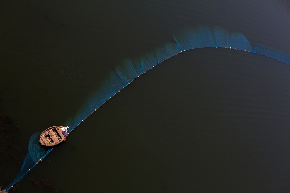 They do fishing every single day. They spread the net in the lake and wait for the fish to stuck to it. They collect all the fishes and send them to city. I was in a hotel next to this Silisarh Lake, morning around 0830 some fisherman was catching fish. The way they spread there fishnet across the lake was mind blowing; I do my composition and took this shot. Location: Silisarh Lake, Kishanpur, Rajasthan, India