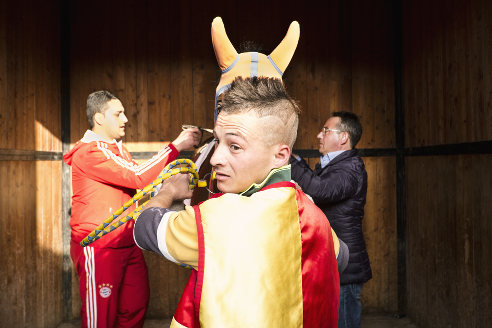 In the last years, the horseracing area has been suffering from a deep crisis due both to the management policy a bit accurate to the problems of the sector and by the economic crisis of Italy. However there are many fans who continue to believe in the sport. I decided to tell the horseracing that resists at this crisis and that still manages to attract many fans and to give work despite the cuts. Cuts that have heavily impacted the sector in recent years by more than 200 million euro in prize money of 2011 have seen a decrease in investments down to a prize money of 75 million euro for 2014, to be divided between a trot and canter. The interest in this world has led me to explore many of its aspects and to learn about a reality of sweat and sacrifice, commitment and dedication, awake at sunshine and returns late at night, trying to catch the different moments that characterize this world. This horseracing reality today continues to live only because the love for the horse goes over every obstacle [ ... ] because if you eat only bread and horse can fully comprehend this world."