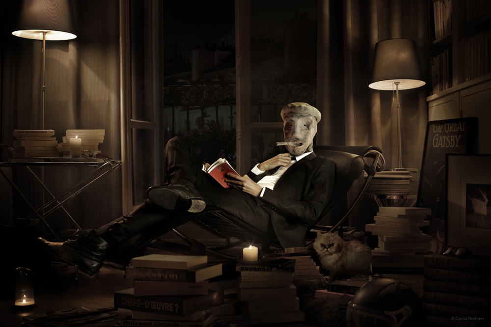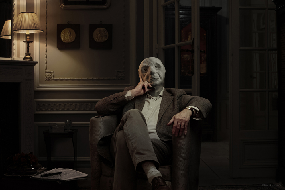 CLAYTIME There seems to be a general agreement that eyes are a window on the soul, on the inner truth. But can eyes really tell that much ? This question is underlying my series of portraits, Claytime, which focuses on what’s behind the mask, by, ironically, creating a new one. I got inspired by a psychology exercice that asks the patient to model his own face out of a piece of clay, in order to reveal his own subconscious to the analyst. This playful exercise gave its name to the series, Claytime, presenting 15 different people who I’ve asked to model their own faces in clay. Despite different skills in modeling, the clay faces are always expressive and revealing. In a second step, I have shot these people, inside their homes, within a framework that defines them both personally and socially. I’ve asked them to take a very static pose, as if they were part of the environment around them. I’ve also intentionally sprinkled some personal objects here and there, as many clues about their personalities. Subsequently, a photomontage allowed me to replace their real faces by their mental projections in clay. Once placed over the shoulders, the new face either contrasts with the body or rather fits it as an almost-organic extension, mysteriously enlightening the person’s mind. This inner world translates visually into a dimly-lit atmosphere, where the sets are lighten up as old flemish paintings, showing all the shades of a muted color palette and making visible all the details hidden in the dark. David Bertram