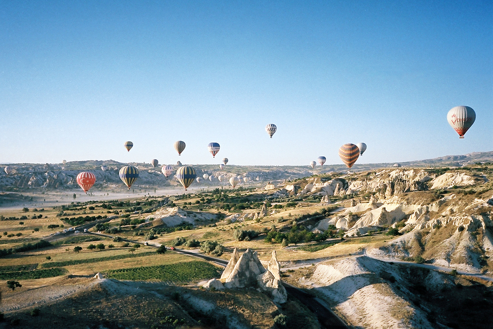 This photo was taken during an early morning hot air balloon ride in Cappadocia, Turkey.