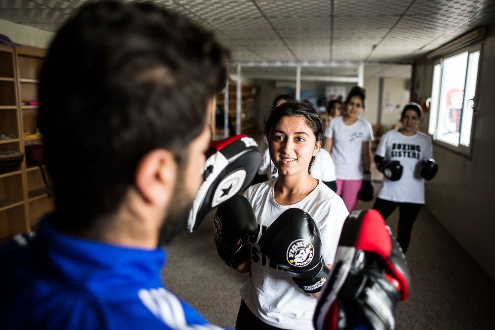 Husna, a 17 year-old Yezidi girl has been living in Rwanga Refugees' Camp, Duhok Governorate - Iraqi Kurdistan since 2014, when she abandoned her home, with thousands of other people, fleeing from ISIS aggression. Lotus flowers Center, a local No Profit, has recently initiated boxing training courses founding a club called "Boxing Sisters"; this to restore confidence in women whose lives have been inflicted by war and violence. Husna, Through active participation in 'Boxing Sisters has discovered her talent for this sport and would like to became a boing trainer for women of other camps.
