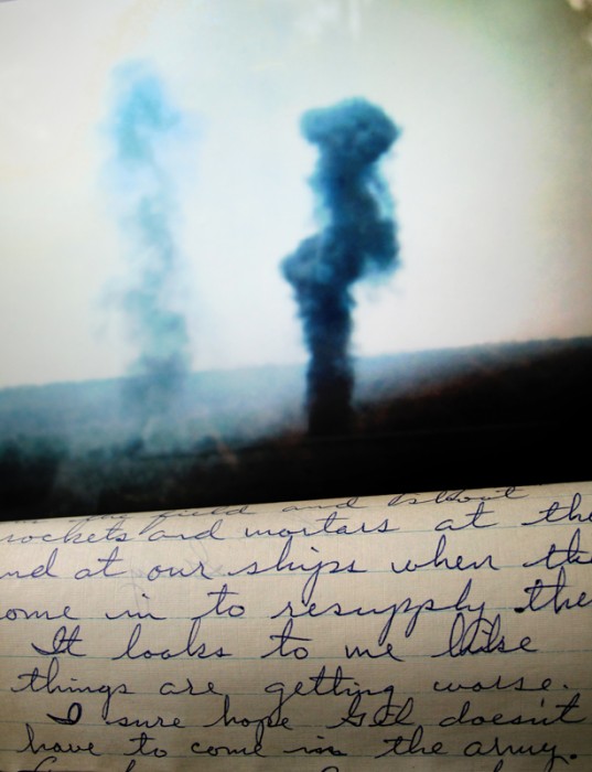 From the series, "My Brother's War". I photographed the letters and pictures sent home by my brother, Gary, during the American War in Viet Nam. They served as my guides as I traced his footsteps in Viet Nam and again after his arrival back in the US. Honorably discharged with Post Traumatic Stress Disorder, he took his own life ten years later. With diligence, I have contacted some of his army friends to further uncover the mystery surrounding his life and death. The story continues to unfold