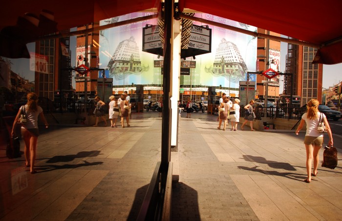 A glass window in the centre of Madrid. A twofold trap, maybe even a twofold opportunity.Reflection and illusion? Two conditions/one outcome.