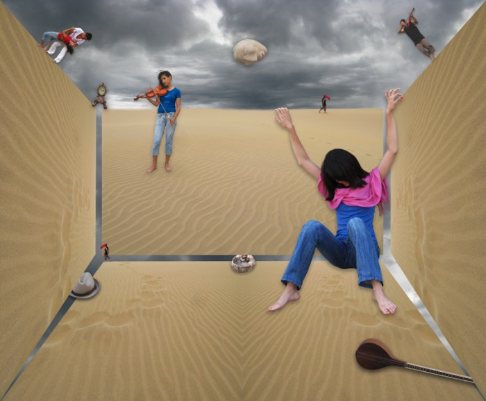 My conceptual work is a confluence of people, elements and landscape. After photographing these subjects, sometimes combine several natural images into one single image.