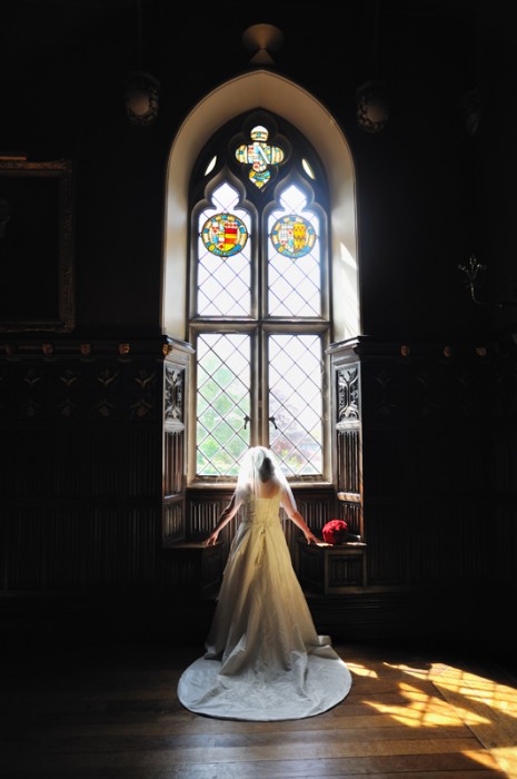 Bride looking out of the gothic Window