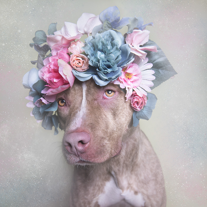 Working with shelter dogs as models, I photograph them wearing custom-made flower crowns,