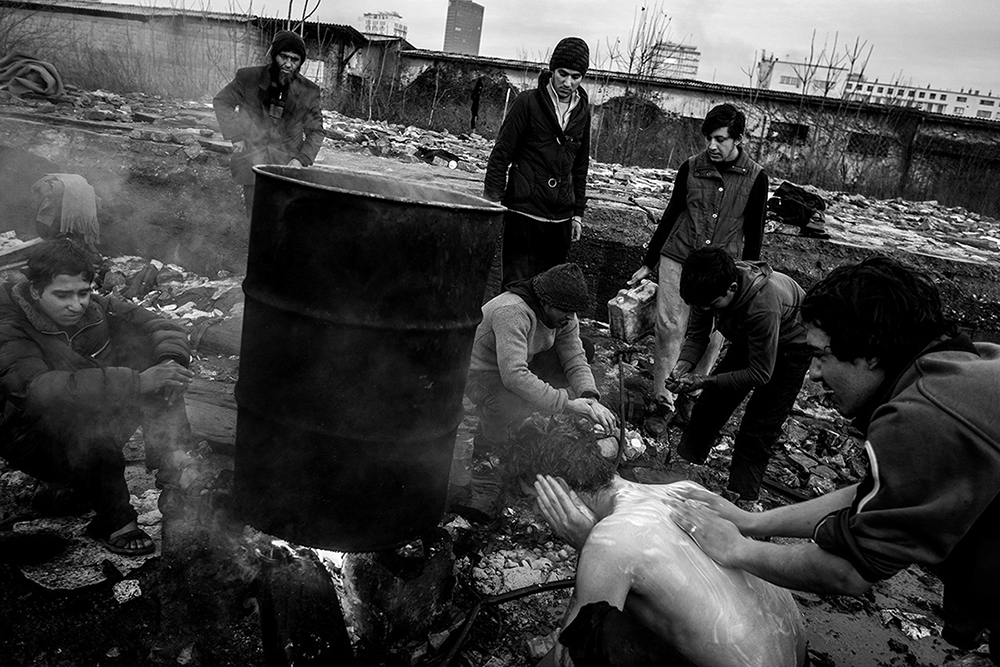 piled-up in derelict warehouses at Belgrade’s railway station. There’s only one hose for