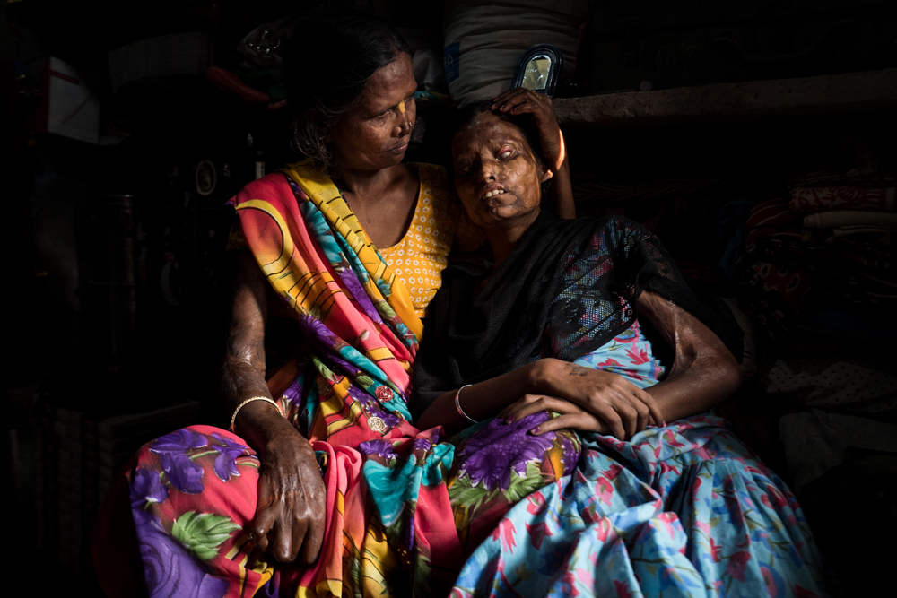 Geeta Mahour, 47, lives with her daughter Neetu, 28, and her