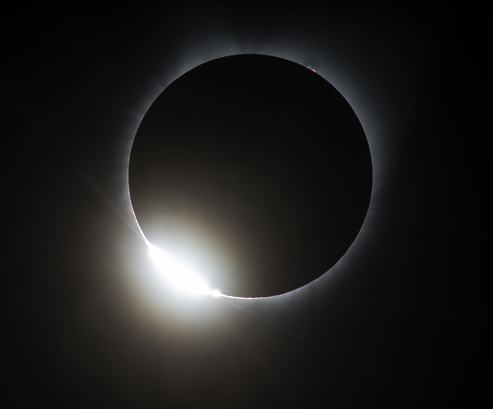 Coverage of the total eclipse of the sun photographed in Casper, Wyoming, USA, the area of totality. The "diamond ring" effect is seen, as the sun re-emerges.