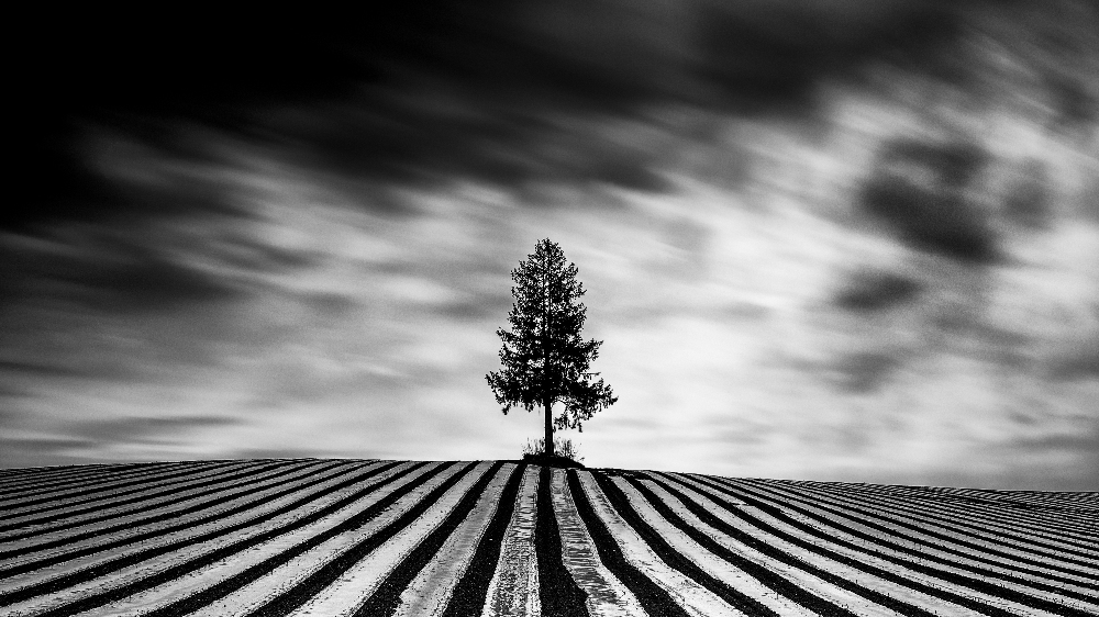 In spring, interesting line pattern appears on the hill. The pattern is the