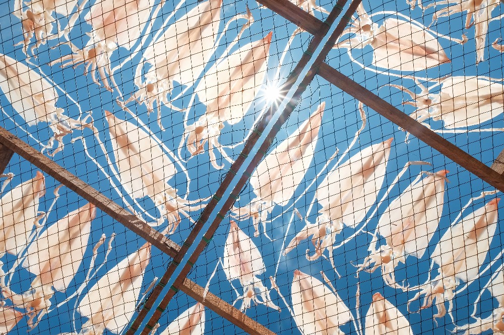 The summer in Taiwan is very hot. In Penghu, there is a culture of sun-exposure-squid.I use special angle to shoot, so that "squid" looks more delicious!