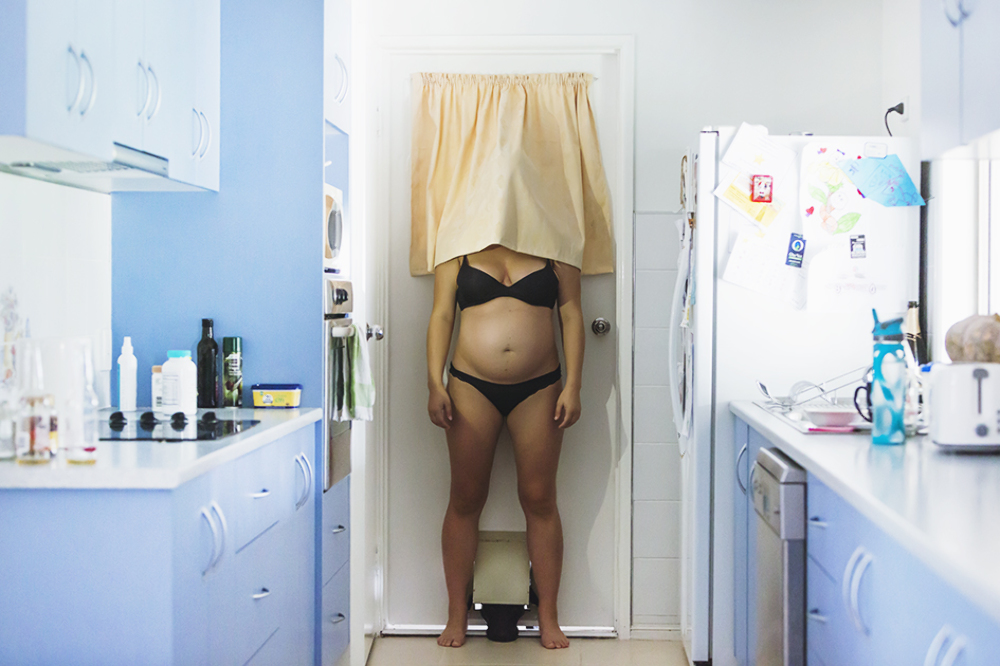 My sister Keren in her kitchen at 30 weeks pregnant. She's been referring to herself as 'the vessel', identifying her body's new role as a living container for the much anticipated daughter, niece, granddaughter and sister.