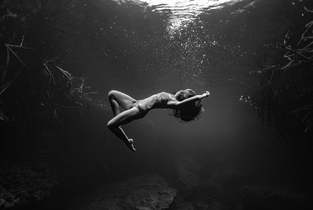 The underwater world offers special vision and sensations. It prompts us to slow down, to immerse ourselves in silence and blue light. It brings us back to our inner self, to connecting with our intuition. It wraps us up in a case of sweetness, of magic. We merge with our water elemental, asleep in everyone but never forgotten.