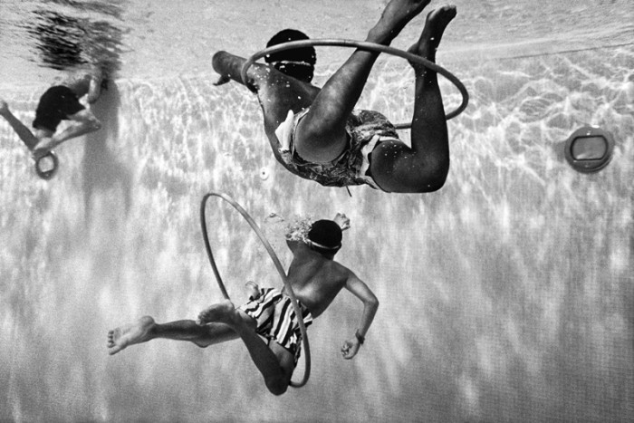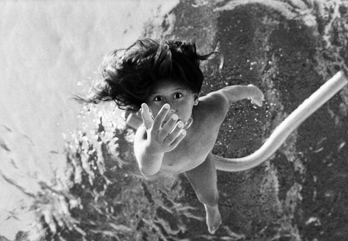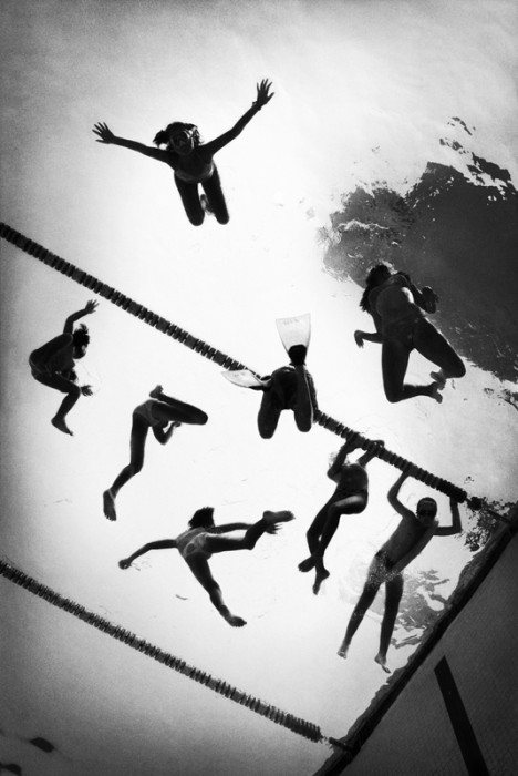 In my ?In The Deep End? series I make use of photography?s ability to at once de-contextualize the familiar and create visual narratives, evoking a fusion of dreamlike memories and sense of childhood regression. The clear, warm water of the swimming pool represents an intersection between the cultural and social pursuit of leisure, the natural element of water and manmade space. The pool provides a place of temporary detachment from life?s everyday routine, people seem liberated and at once removed from any social reference as they float, dive, sink or swim through the water. Not unlike some scene from Cirque du Soleil, these unwitting cast members set the stage for a sort of contemporary choreography - the human body submerged underwater and illuminated by an ever-changing quality of light provide all the elements for a playful ballet seemingly detached from gravity. Working in public swimming pools where photography is of course prohibited, I smuggled in my camera and surreptitiously maneuvered underwater whilst photographing without the knowledge or complicity of my subjects as I inevitably strained to hold my breath. Seeking out public swimming pools on the Cot? D'Azur and elsewhere around the Mediterranean, I was drawn to scenes of the unusual, frequently populated with energetic children less content to wallow on the surface than their more 'mature' parents. The decision to photograph in black & white was a central choice. Without the immediacy of colour and the blue hue of the water to provide context, one's recognition that these pictures are taken underwater is momentarily delayed and underscores the abstract sense of suspension and movement that permeates through the series.