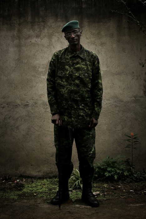 BUNAGANA, DR CONGO - December 18, 2008: General Laurent Nkunda leader of the rebel group, the National Congress for the Defence of the People (CNDP) stands for a portrait. For the last 10 years, eastern Democratic Republic of Congo has been embroiled in a conflict that has claimed over 5 million lives and displaced more than 1 million people. After the 1994 genocide in Rwanda, in which Hutus massacred nearly one million Tutsis, the perpetrators of the genocide fled to DR Congo, where they have continued to prey on Congolese Tutsis. Currently, the National Congress for the Defense of the People (CNDP) lead by renegade General Laurent Nkunda claims to be protecting Tutsis from Hutu militias. However the motives for territorial control run far deeper than ethnicity, the country holds vast amounts of natural resources, including diamonds, cassiterite and coltan. Combined, all sides of the conflict including the Congolese army (FARDC) have conscripted over 30 000 child soldiers and have used rape as a weapon of war, with reported cases numbering over 40 000. Numerous peace agreements have been signed and broken. Recent fighting in October resulted in the displacement of 250 000 people, and the advancement of the CNDP brought the front lines of the conflict only 10 km away from the provincial capital of Goma. Life in Eastern Democratic Republic of Congo continues. Regardless of ethnic background, most people struggle to feed their family, and after 10 years, a generation of children know nothing more than the atrocities of war.