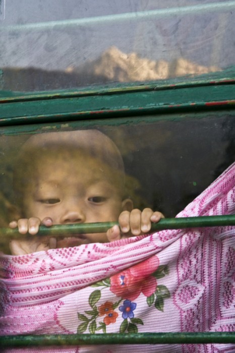 Young Tibetan refugee at the window, Dharamsala, Himachal Pradesh, India.