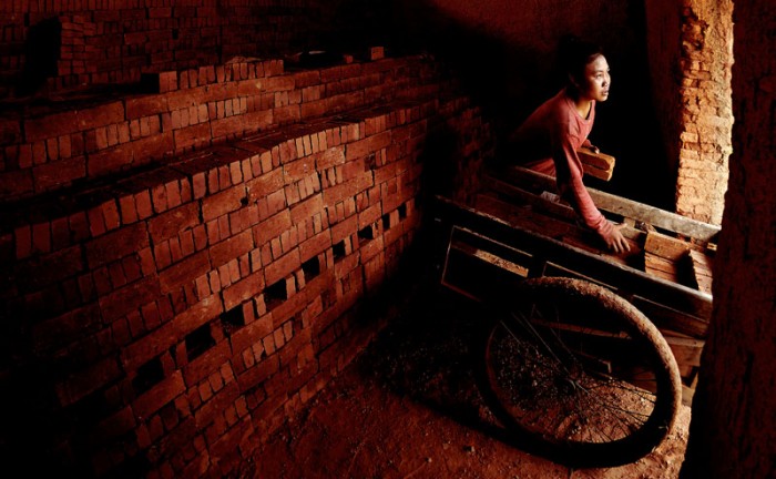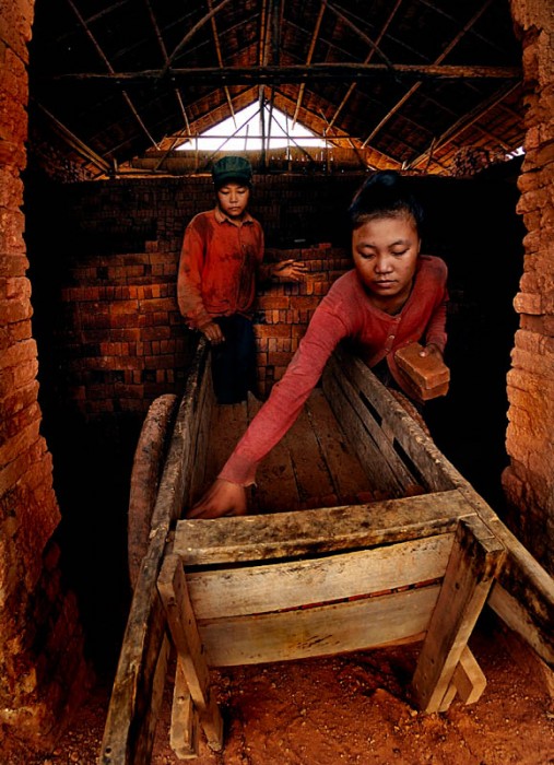 Hot and heavy labor is endured by young workers in brick kilns in Laos.