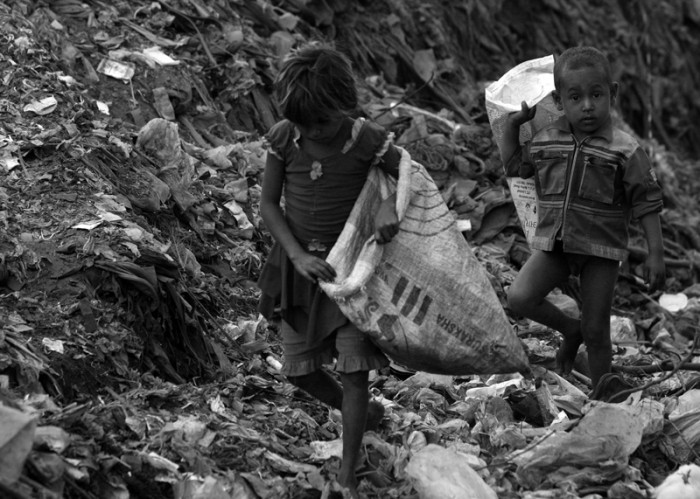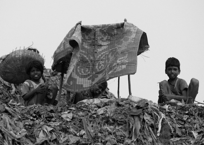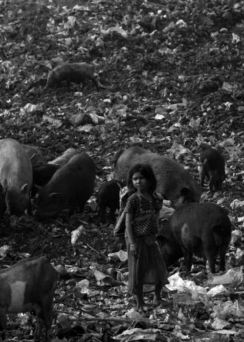 Calcutta's dump Children photographed last Nov. The children have to fight with pigs, wild dogs, rats and crows in order to collect plastic so it can be recycled. They get 20cent for every KG of plastic. However, even though they are surrounded by diversity kids will always be kids and mange a smile!