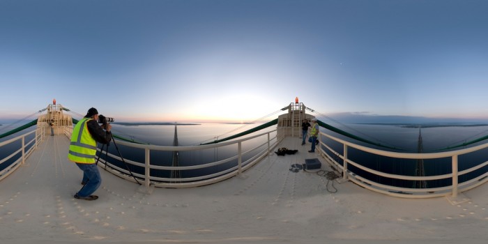 550 feet above Lake Michigan & Lake Huron we are on the very top of the great Mackinac Bridge which connects lower Michigan with upper Michigan.