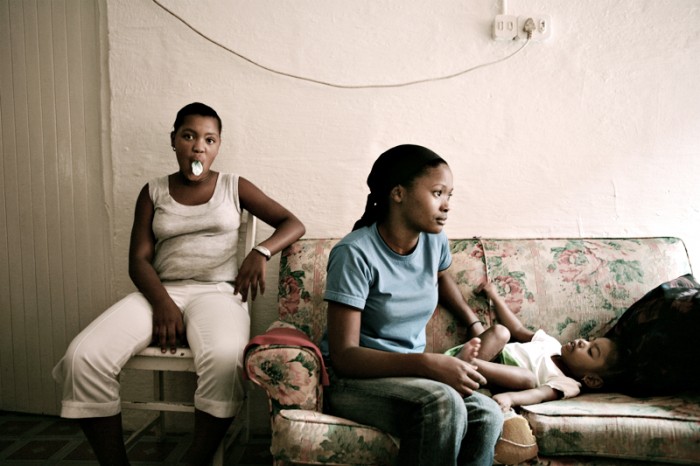 Teenage pregnancy is widespread in South Africa. In the 'coloured' township of Manenberg, girls see pregnancy as a way to gain adult status, and the monthly child support cheque is an important element in the household economies. Most teenage mothers live with the parents or grand parents due to the housing shortage in the area. In many cases, the fathers, often teenagers from the neighbourhood, cannot live up to their responsabilities, and the girls are left alone with the children, who grow up without male role models.