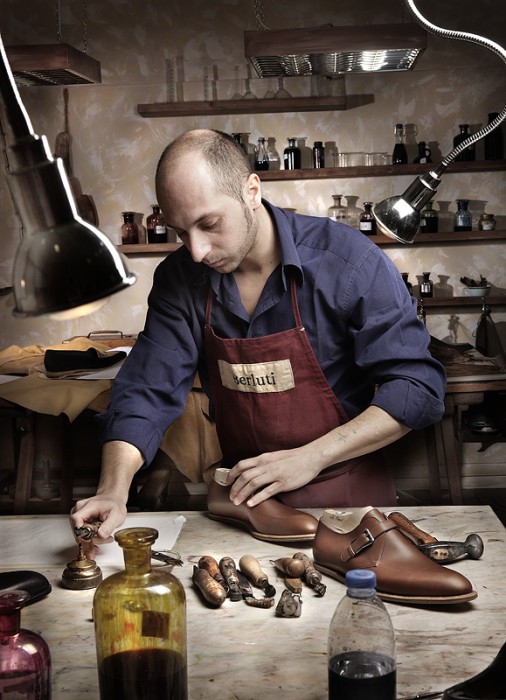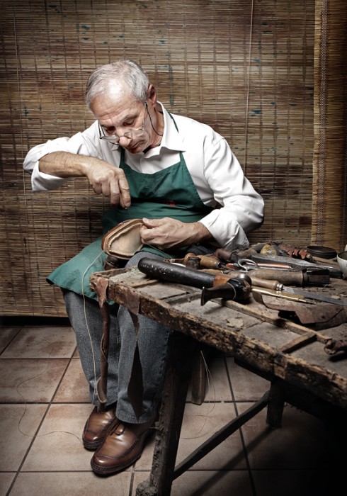 italian craftman shoemaker are symbol of the "made in itlay" the prestige of hand and traditional made products that represent part of the history and traditional values of Italy
