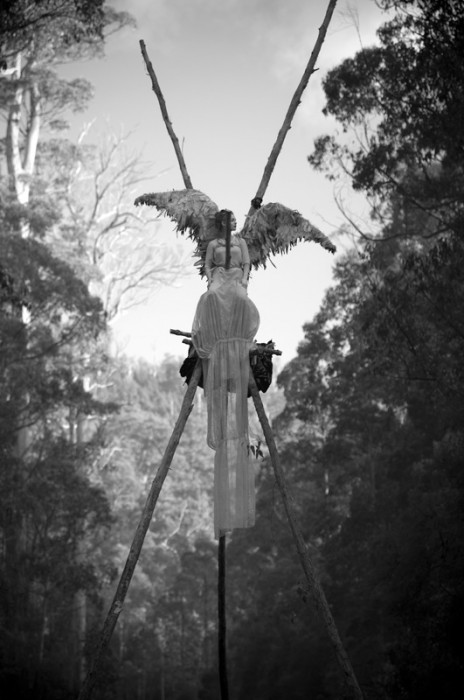 A forest activist blocks access to the forests of the Weld Valley in Southern Tasmania, Australia.