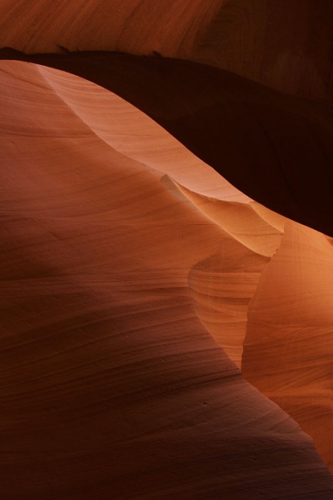 light reflects off the wall of Slot canyons in Arizona...sandstone eroded by water in an under ground canyon