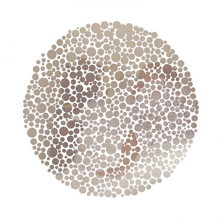 The Ishihara Colour Test is the most common clinical test for red-green colour vision deficiencies in humans. It comprises up to 38 plates, each containing a circle of dots randomised in colour and size, which form a number that is visible to people with normal colour vision. However, the number in the dots is invisible, or difficult to see, for those with a red-green colour vision defect.