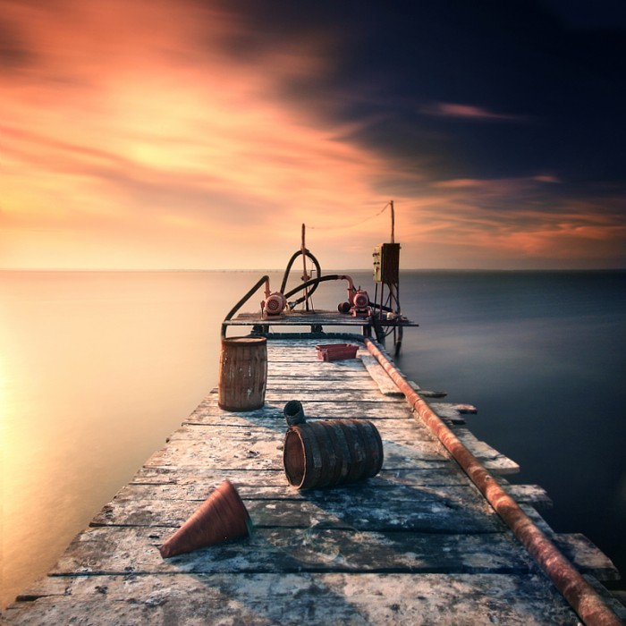 The sunset on the abandoned fish farm pier. After USSR colapse it was forgotten forever.