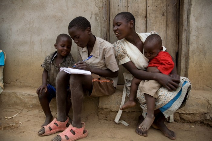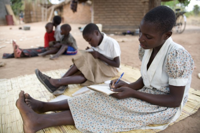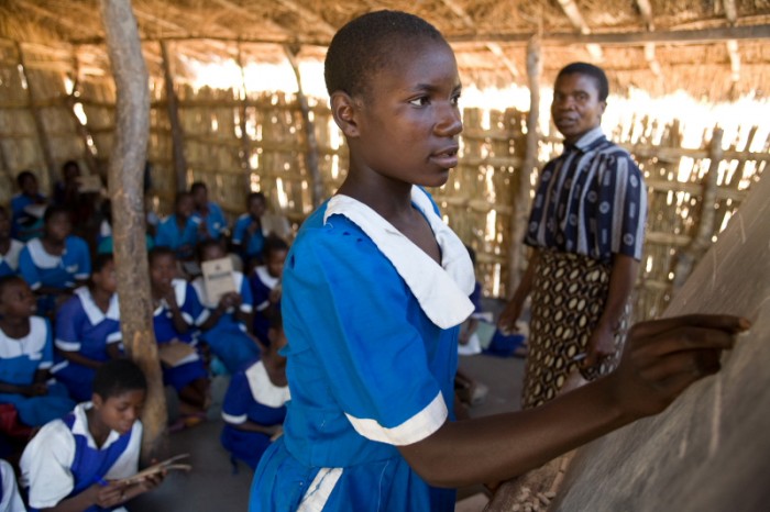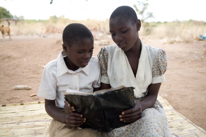 Agnes Ntenje, 14, is a Grade Five student in her village's primary school in Malawi. She has three younger siblings and is a role model to her younger sister, Angelina, age 10, (l) in Grade Four. She hopes to be president or a teacher. Women in Agnes' village are supporting the education of young girls so that they may have opportunities their mothers didn't have. In the Kasungu region of Malawi, CARE and General Mills are supporting the Join My Village project which will bring education and economic development to 75 villages.