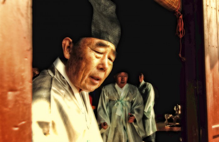 South Koreans participate in confucian ceremony.