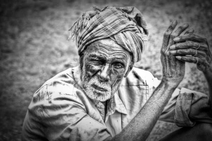 This image is of an old man, an alms-seeker, who was sitting in front of a temple, Lepakshi, in a remote village in India.