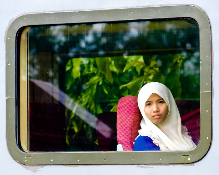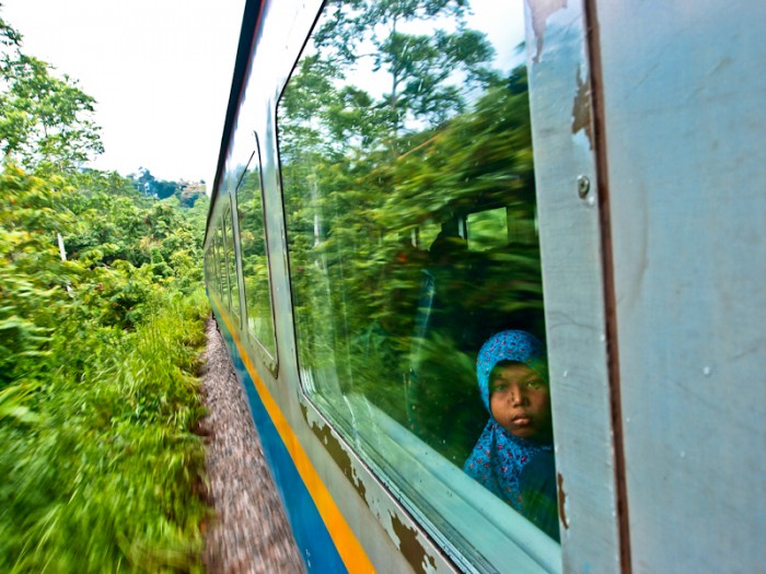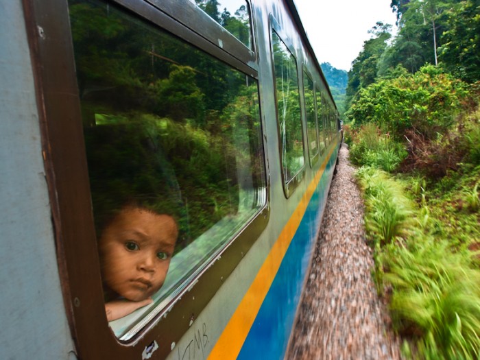 In the 10th June 2010 I embarked on a journey between Kota Bahru and Kuala Lipis in the local train which crosses the verdant Kelantan´s jungle. This train is the main mean of transportation for most of the residents of this area, but, over time, it gained some fame among the most curious and intrepid traveler, so, I ended up there. Apart of having a nice travel experience, I was expecting, also, to take some fine pictures, and just right of the beginning of the trip, which lasted about seven hours, I started to take numerous photos inside the train, and, of course, towards outside, catching the magnificent landscapes of the surroundings. It was a normal weekday, with lots of people going to work, to school, to the markets, or just jumping between villages, and soon I realized that the major source of photographic interest were the passengers that were behind the windowâ??s carriages, waiting for their stop. Rapidly, I changed my main motif and started to catch the people staring outside the train. It was a very enthusiastic way of photographing, and naturally, I became one more element in their views. Particularly, there were many children in the train so, easily, most of the pictures are from the young ones. Sometimes inside the carriage, dangerously stretching my arm looking for the best shooting angle, and sometimes outside, in a route´s break, I took several snaps of this moments, which I called â??Beyond the Glassâ??.