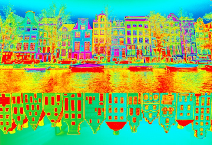 By combining street shots of Amsterdam with artifacts depicting the same scene and then displaying the result in different colors these images invite the viewer to think about place in a different way. The Amsterdam series is part of an ongoing body of work.