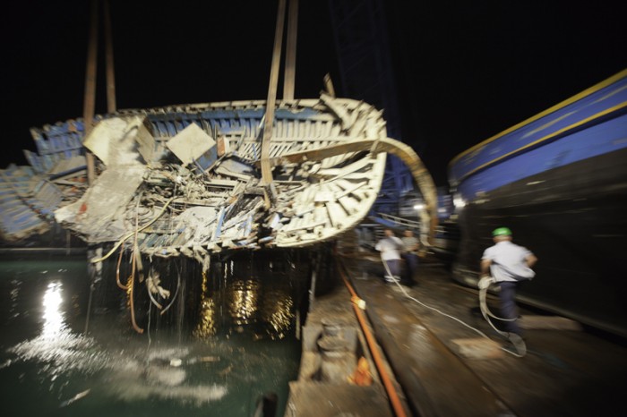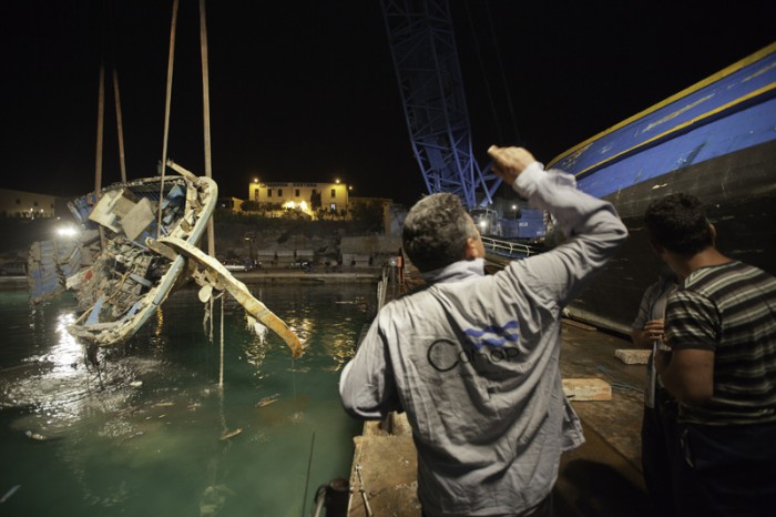 Lampedusa, the small island where refugees land. Here are all the broken boats that had to be taken out of the water by an enterprise from the mainland.